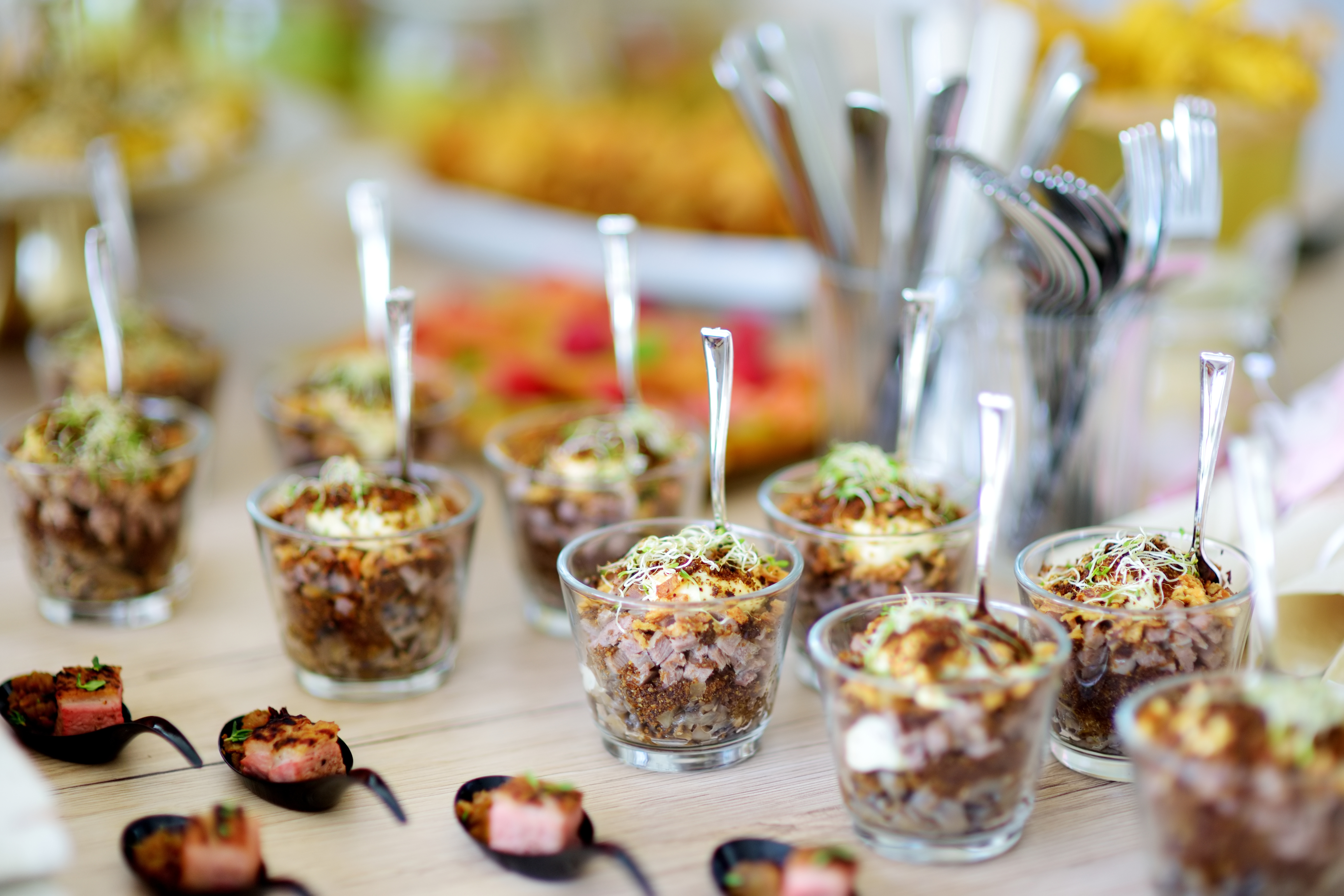 - To keep catering costs down, consider creative alternatives to a formal sit-down dinner. Backyard barbecues, potluck-style receptions, or hiring a local food truck can be fun and budget-friendly. You’re in your own space, so you have the freedom to choose any food style you want. Just remember to coordinate things like power hookups or parking space for food trucks if you go that route.
